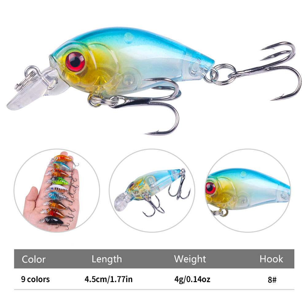 Specifications: 4.5 cm, 4 g, hook size #8, diving depth 0.1–0.3 m