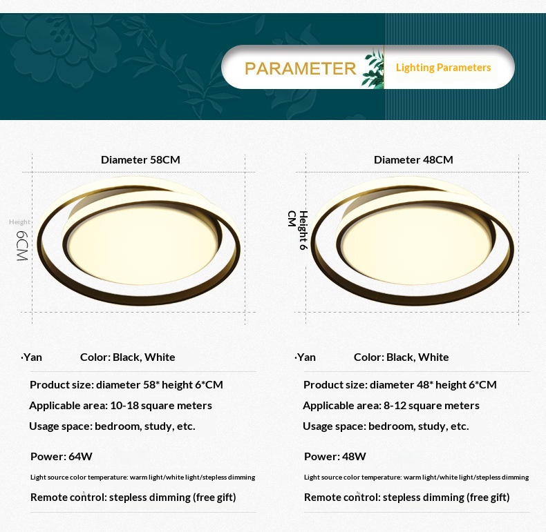 External Dimensions Black Round 48 6 Cm Cool White, Black Round 48 6 Cm Warm White, Black Round 48 6 Cm Tri-color, Black Round 48 6 Cm Stepless Dimming Gold Round 48 6 Cm Cool White, Gold Round 48 6 Cm Warm White, Gold Round 48 6 Cm Tri-color, Gold Round 48 6 Cm Stepless Dimming